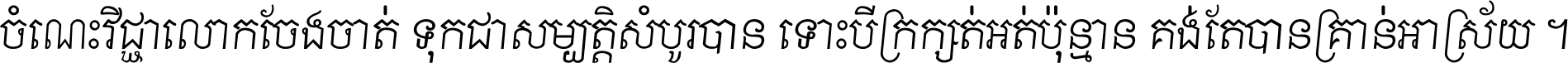 ចំណេះ​វិជ្ជា​លោក​ចែង​ចាត់ ទុក​ជា​សម្បត្តិ​សំបូរ​បាន ទោះ​បី​ក្រក្សត់​អត់​ប៉ុន្មាន គង់​តែ​បាន​គ្រាន់​អាស្រ័យ ។