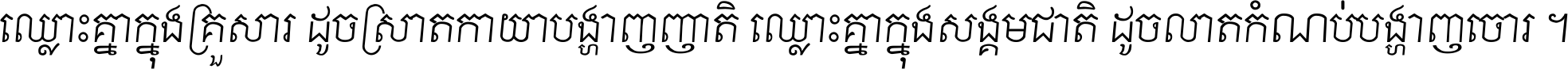 ឈ្លោះ​គ្នា​ក្នុង​គ្រួសារ ដូច​ស្រាត​កាយា​បង្ហាញ​ញាតិ ឈ្លោះគ្នាក្នុង​សង្គមជាតិ ដូច​លាត​កំណប់​បង្ហាញ​ចោរ ។
