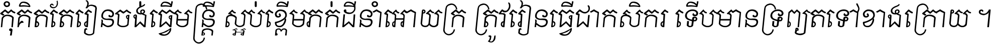 កុំ​គិត​តែ​រៀន​ចង់ធ្វើ​មន្ត្រី ស្អប់​ខ្ពើម​ភក់ដី​នាំអោយ​ក្រ ត្រូវ​រៀន​ធ្វើ​ជា​កសិករ ទើប​មានទ្រព្យ​ត​ទៅ​ខាង​ក្រោយ ។