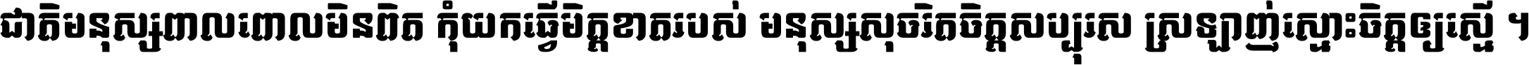 ជាតិ​មនុស្ស​ពាល​ពោល​មិន​ពិត កុំ​យក​ធ្វើ​មិត្ត​ខាត​របស់ មនុស្ស​សុចរិត​ចិត្ត​សប្បុរស ស្រឡាញ់​ស្មោះ​ចិត្ត​ឲ្យ​ស្មើ ។