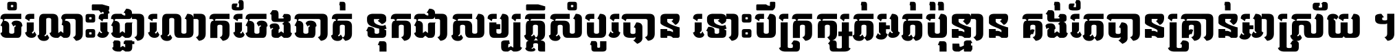ចំណេះ​វិជ្ជា​លោក​ចែង​ចាត់ ទុក​ជា​សម្បត្តិ​សំបូរ​បាន ទោះ​បី​ក្រក្សត់​អត់​ប៉ុន្មាន គង់​តែ​បាន​គ្រាន់​អាស្រ័យ ។