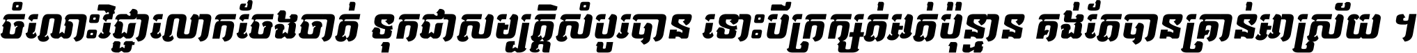 ចំណេះ​វិជ្ជា​លោក​ចែង​ចាត់ ទុក​ជា​សម្បត្តិ​សំបូរ​បាន ទោះ​បី​ក្រក្សត់​អត់​ប៉ុន្មាន គង់​តែ​បាន​គ្រាន់​អាស្រ័យ ។