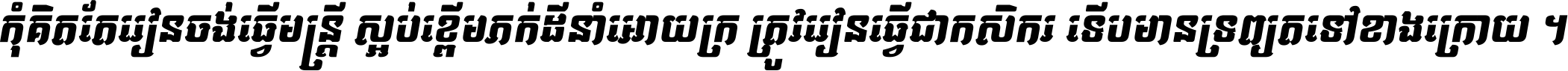 កុំ​គិត​តែ​រៀន​ចង់ធ្វើ​មន្ត្រី ស្អប់​ខ្ពើម​ភក់ដី​នាំអោយ​ក្រ ត្រូវ​រៀន​ធ្វើ​ជា​កសិករ ទើប​មានទ្រព្យ​ត​ទៅ​ខាង​ក្រោយ ។