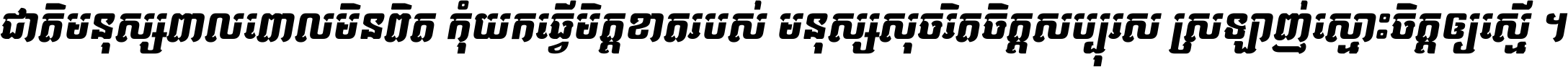 ជាតិ​មនុស្ស​ពាល​ពោល​មិន​ពិត កុំ​យក​ធ្វើ​មិត្ត​ខាត​របស់ មនុស្ស​សុចរិត​ចិត្ត​សប្បុរស ស្រឡាញ់​ស្មោះ​ចិត្ត​ឲ្យ​ស្មើ ។