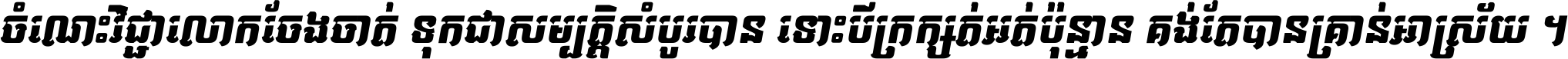 ចំណេះ​វិជ្ជា​លោក​ចែង​ចាត់ ទុក​ជា​សម្បត្តិ​សំបូរ​បាន ទោះ​បី​ក្រក្សត់​អត់​ប៉ុន្មាន គង់​តែ​បាន​គ្រាន់​អាស្រ័យ ។