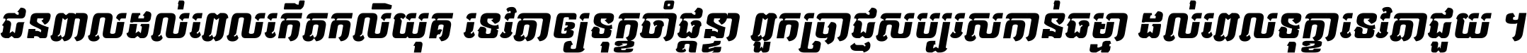 ជនពាល​ដល់​ពេល​កើត​កលិយុគ ទេវតា​ឲ្យ​ទុក្ខ​ចាំ​ផ្ដន្ទា ពួក​ប្រាជ្ញ​សប្បរស​កាន់​ធម្មា ដល់​ពេល​ទុក្ខា​ទេវតា​ជួយ ។