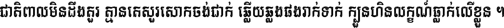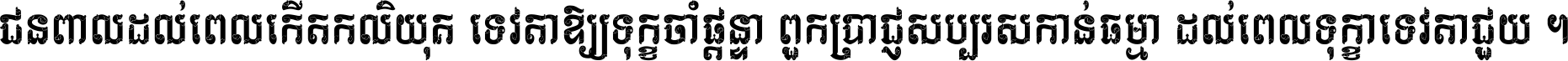 ជនពាល​ដល់​ពេល​កើត​កលិយុគ ទេវតា​ឲ្យ​ទុក្ខ​ចាំ​ផ្ដន្ទា ពួក​ប្រាជ្ញ​សប្បរស​កាន់​ធម្មា ដល់​ពេល​ទុក្ខា​ទេវតា​ជួយ ។