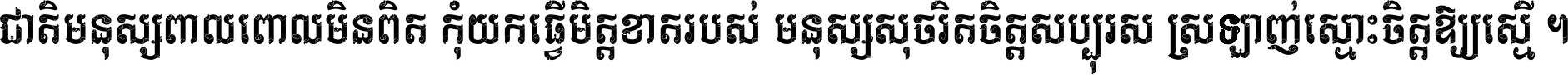 ជាតិ​មនុស្ស​ពាល​ពោល​មិន​ពិត កុំ​យក​ធ្វើ​មិត្ត​ខាត​របស់ មនុស្ស​សុចរិត​ចិត្ត​សប្បុរស ស្រឡាញ់​ស្មោះ​ចិត្ត​ឲ្យ​ស្មើ ។
