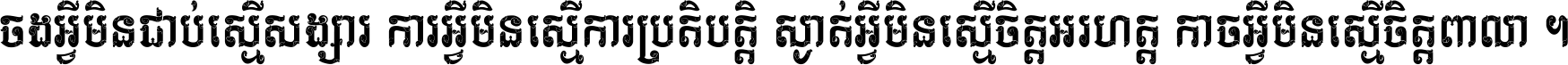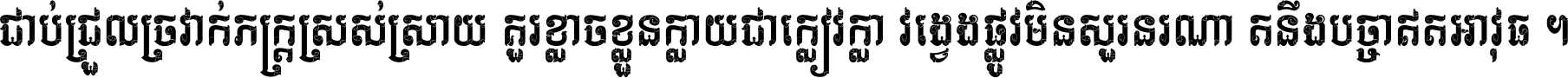 ចង​អ្វី​មិន​ជាប់​ស្មើ​សង្សារ ការ​អ្វី​មិន​ស្មើ​ការ​ប្រតិបត្តិ ស្ងាត់​អ្វី​មិន​ស្មើ​​ចិត្ត​អរហត្ត​ កាច​អ្វី​មិន​ស្មើ​ចិត្ត​ពាលា ។