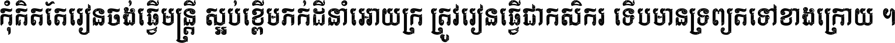 កុំ​គិត​តែ​រៀន​ចង់ធ្វើ​មន្ត្រី ស្អប់​ខ្ពើម​ភក់ដី​នាំអោយ​ក្រ ត្រូវ​រៀន​ធ្វើ​ជា​កសិករ ទើប​មានទ្រព្យ​ត​ទៅ​ខាង​ក្រោយ ។
