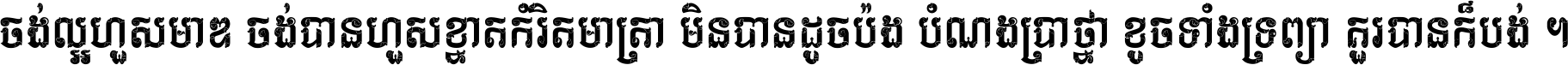 ចង់​ល្អ​ហួស​មាឌ ចង់​បាន​ហួស​ខ្នាត​កំរិត​មាត្រា មិន​បាន​ដូច​ប៉ង បំណង​ប្រាថ្នា ខូច​ទាំងទ្រព្យា គួរ​បាន​ក៏បង់ ។