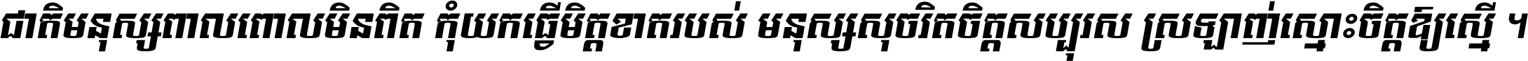 ជាតិ​មនុស្ស​ពាល​ពោល​មិន​ពិត កុំ​យក​ធ្វើ​មិត្ត​ខាត​របស់ មនុស្ស​សុចរិត​ចិត្ត​សប្បុរស ស្រឡាញ់​ស្មោះ​ចិត្ត​ឲ្យ​ស្មើ ។