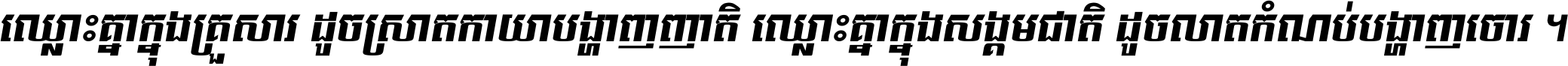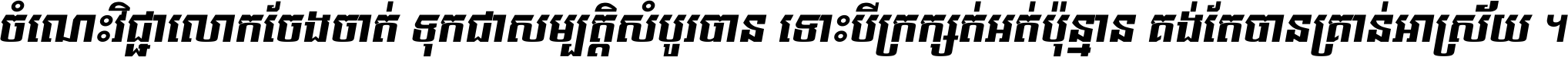 ចំណេះ​វិជ្ជា​លោក​ចែង​ចាត់ ទុក​ជា​សម្បត្តិ​សំបូរ​បាន ទោះ​បី​ក្រក្សត់​អត់​ប៉ុន្មាន គង់​តែ​បាន​គ្រាន់​អាស្រ័យ ។