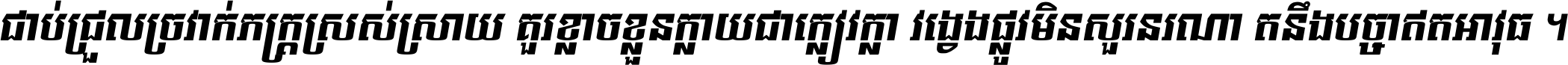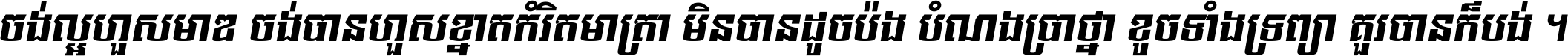 ចង​អ្វី​មិន​ជាប់​ស្មើ​សង្សារ ការ​អ្វី​មិន​ស្មើ​ការ​ប្រតិបត្តិ ស្ងាត់​អ្វី​មិន​ស្មើ​​ចិត្ត​អរហត្ត​ កាច​អ្វី​មិន​ស្មើ​ចិត្ត​ពាលា ។