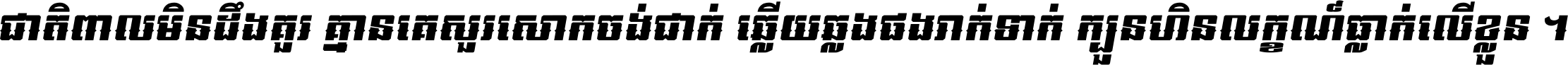 ចង​អ្វី​មិន​ជាប់​ស្មើ​សង្សារ ការ​អ្វី​មិន​ស្មើ​ការ​ប្រតិបត្តិ ស្ងាត់​អ្វី​មិន​ស្មើ​​ចិត្ត​អរហត្ត​ កាច​អ្វី​មិន​ស្មើ​ចិត្ត​ពាលា ។