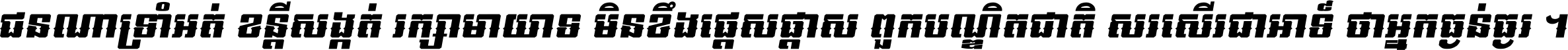ជនណា​ទ្រាំអត់ ខន្តី​សង្កត់ រក្សា​មាយាទ មិន​ខឹង​ផ្ដេសផ្ដាស ពួក​បណ្ឌិតជាតិ សរសើរ​ជា​អាទ៍ ថា​អ្នក​ធ្ងន់​ធ្ងរ ។