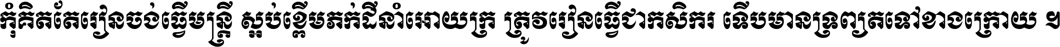 កុំ​គិត​តែ​រៀន​ចង់ធ្វើ​មន្ត្រី ស្អប់​ខ្ពើម​ភក់ដី​នាំអោយ​ក្រ ត្រូវ​រៀន​ធ្វើ​ជា​កសិករ ទើប​មានទ្រព្យ​ត​ទៅ​ខាង​ក្រោយ ។
