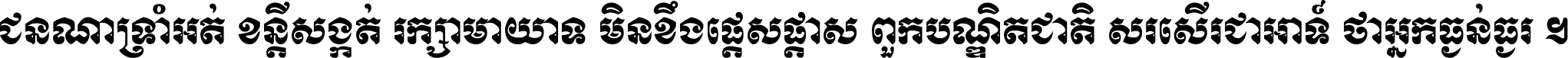 ជនពាល​ដល់​ពេល​កើត​កលិយុគ ទេវតា​ឲ្យ​ទុក្ខ​ចាំ​ផ្ដន្ទា ពួក​ប្រាជ្ញ​សប្បរស​កាន់​ធម្មា ដល់​ពេល​ទុក្ខា​ទេវតា​ជួយ ។
