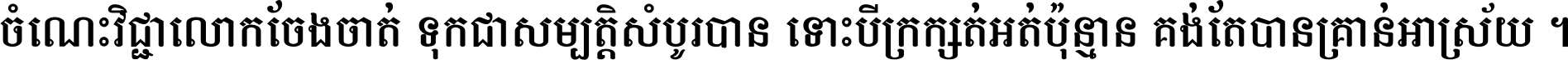 ចំណេះ​វិជ្ជា​លោក​ចែង​ចាត់ ទុក​ជា​សម្បត្តិ​សំបូរ​បាន ទោះ​បី​ក្រក្សត់​អត់​ប៉ុន្មាន គង់​តែ​បាន​គ្រាន់​អាស្រ័យ ។