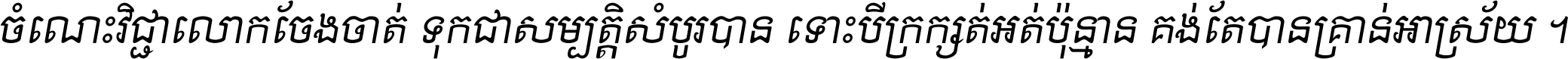 ចំណេះ​វិជ្ជា​លោក​ចែង​ចាត់ ទុក​ជា​សម្បត្តិ​សំបូរ​បាន ទោះ​បី​ក្រក្សត់​អត់​ប៉ុន្មាន គង់​តែ​បាន​គ្រាន់​អាស្រ័យ ។