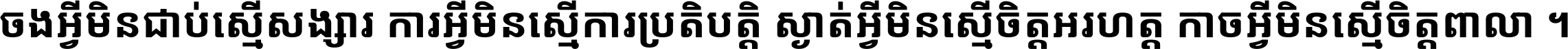 ចង​អ្វី​មិន​ជាប់​ស្មើ​សង្សារ ការ​អ្វី​មិន​ស្មើ​ការ​ប្រតិបត្តិ ស្ងាត់​អ្វី​មិន​ស្មើ​​ចិត្ត​អរហត្ត​ កាច​អ្វី​មិន​ស្មើ​ចិត្ត​ពាលា ។