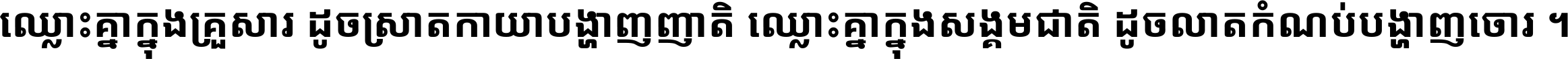 ឈ្លោះ​គ្នា​ក្នុង​គ្រួសារ ដូច​ស្រាត​កាយា​បង្ហាញ​ញាតិ ឈ្លោះគ្នាក្នុង​សង្គមជាតិ ដូច​លាត​កំណប់​បង្ហាញ​ចោរ ។