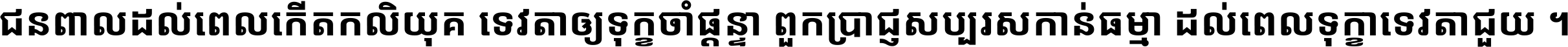 ជនពាល​ដល់​ពេល​កើត​កលិយុគ ទេវតា​ឲ្យ​ទុក្ខ​ចាំ​ផ្ដន្ទា ពួក​ប្រាជ្ញ​សប្បរស​កាន់​ធម្មា ដល់​ពេល​ទុក្ខា​ទេវតា​ជួយ ។