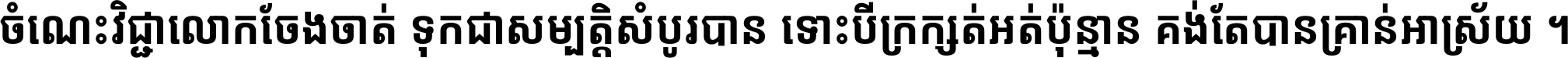ចំណេះ​វិជ្ជា​លោក​ចែង​ចាត់ ទុក​ជា​សម្បត្តិ​សំបូរ​បាន ទោះ​បី​ក្រក្សត់​អត់​ប៉ុន្មាន គង់​តែ​បាន​គ្រាន់​អាស្រ័យ ។