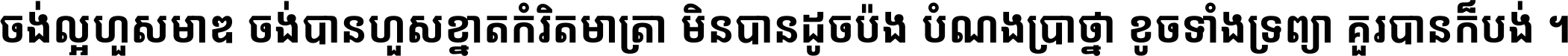 ចង់​ល្អ​ហួស​មាឌ ចង់​បាន​ហួស​ខ្នាត​កំរិត​មាត្រា មិន​បាន​ដូច​ប៉ង បំណង​ប្រាថ្នា ខូច​ទាំងទ្រព្យា គួរ​បាន​ក៏បង់ ។