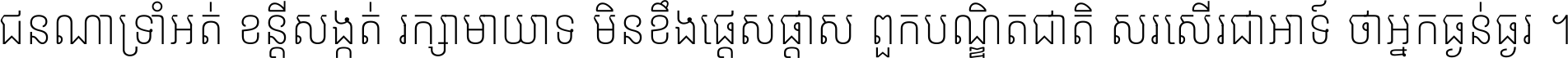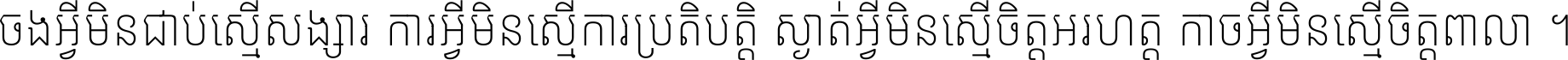 ចង​អ្វី​មិន​ជាប់​ស្មើ​សង្សារ ការ​អ្វី​មិន​ស្មើ​ការ​ប្រតិបត្តិ ស្ងាត់​អ្វី​មិន​ស្មើ​​ចិត្ត​អរហត្ត​ កាច​អ្វី​មិន​ស្មើ​ចិត្ត​ពាលា ។