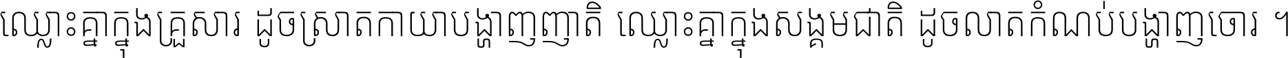 ឈ្លោះ​គ្នា​ក្នុង​គ្រួសារ ដូច​ស្រាត​កាយា​បង្ហាញ​ញាតិ ឈ្លោះគ្នាក្នុង​សង្គមជាតិ ដូច​លាត​កំណប់​បង្ហាញ​ចោរ ។