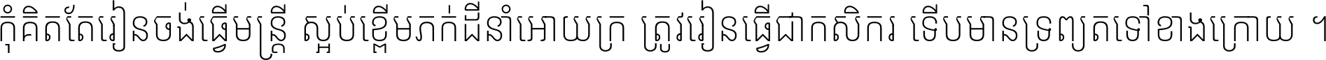 កុំ​គិត​តែ​រៀន​ចង់ធ្វើ​មន្ត្រី ស្អប់​ខ្ពើម​ភក់ដី​នាំអោយ​ក្រ ត្រូវ​រៀន​ធ្វើ​ជា​កសិករ ទើប​មានទ្រព្យ​ត​ទៅ​ខាង​ក្រោយ ។
