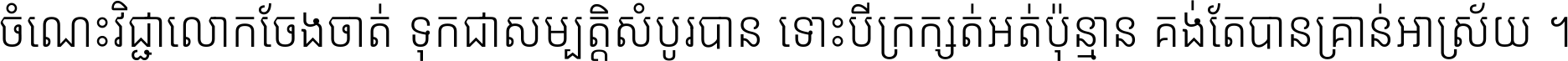 ចំណេះ​វិជ្ជា​លោក​ចែង​ចាត់ ទុក​ជា​សម្បត្តិ​សំបូរ​បាន ទោះ​បី​ក្រក្សត់​អត់​ប៉ុន្មាន គង់​តែ​បាន​គ្រាន់​អាស្រ័យ ។