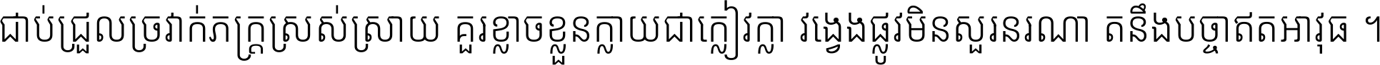 ចង​អ្វី​មិន​ជាប់​ស្មើ​សង្សារ ការ​អ្វី​មិន​ស្មើ​ការ​ប្រតិបត្តិ ស្ងាត់​អ្វី​មិន​ស្មើ​​ចិត្ត​អរហត្ត​ កាច​អ្វី​មិន​ស្មើ​ចិត្ត​ពាលា ។