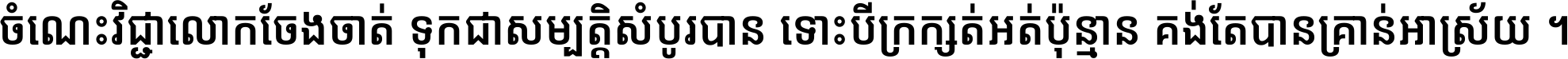 ចំណេះ​វិជ្ជា​លោក​ចែង​ចាត់ ទុក​ជា​សម្បត្តិ​សំបូរ​បាន ទោះ​បី​ក្រក្សត់​អត់​ប៉ុន្មាន គង់​តែ​បាន​គ្រាន់​អាស្រ័យ ។