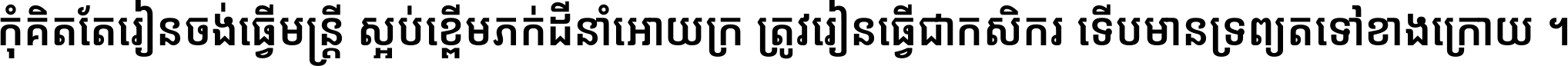 កុំ​គិត​តែ​រៀន​ចង់ធ្វើ​មន្ត្រី ស្អប់​ខ្ពើម​ភក់ដី​នាំអោយ​ក្រ ត្រូវ​រៀន​ធ្វើ​ជា​កសិករ ទើប​មានទ្រព្យ​ត​ទៅ​ខាង​ក្រោយ ។