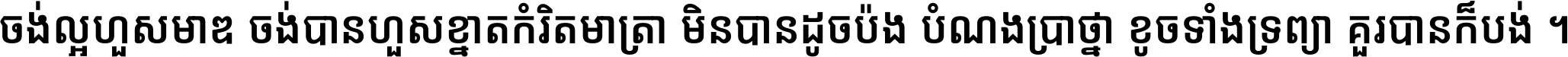 ចង់​ល្អ​ហួស​មាឌ ចង់​បាន​ហួស​ខ្នាត​កំរិត​មាត្រា មិន​បាន​ដូច​ប៉ង បំណង​ប្រាថ្នា ខូច​ទាំងទ្រព្យា គួរ​បាន​ក៏បង់ ។