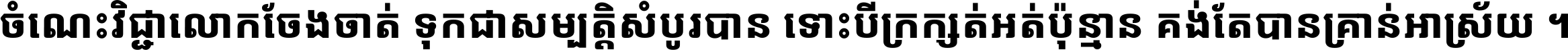 ចំណេះ​វិជ្ជា​លោក​ចែង​ចាត់ ទុក​ជា​សម្បត្តិ​សំបូរ​បាន ទោះ​បី​ក្រក្សត់​អត់​ប៉ុន្មាន គង់​តែ​បាន​គ្រាន់​អាស្រ័យ ។