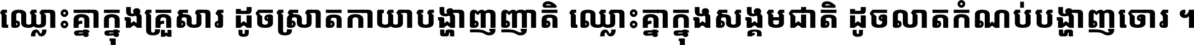 ឈ្លោះ​គ្នា​ក្នុង​គ្រួសារ ដូច​ស្រាត​កាយា​បង្ហាញ​ញាតិ ឈ្លោះគ្នាក្នុង​សង្គមជាតិ ដូច​លាត​កំណប់​បង្ហាញ​ចោរ ។