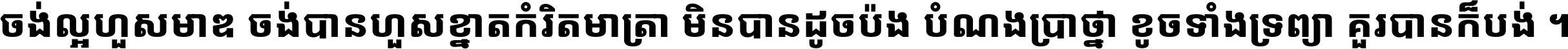 ចង់​ល្អ​ហួស​មាឌ ចង់​បាន​ហួស​ខ្នាត​កំរិត​មាត្រា មិន​បាន​ដូច​ប៉ង បំណង​ប្រាថ្នា ខូច​ទាំងទ្រព្យា គួរ​បាន​ក៏បង់ ។