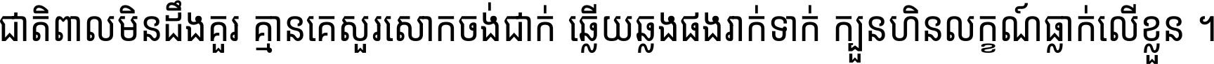 ជាតិ​ពាល​មិន​ដឹង​គួរ គ្មាន​គេ​សួរ​សោក​ចង់​ជាក់ ឆ្លើយ​ឆ្លង​ផង​រាក់​ទាក់​ ក្បួន​ហិន​លក្ខណ៍​ធ្លាក់​លើ​ខ្លួន ។