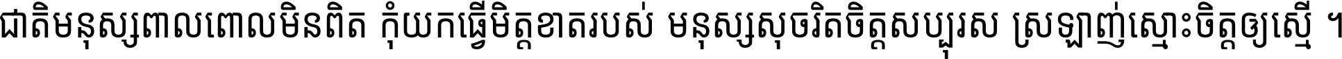ជាតិ​មនុស្ស​ពាល​ពោល​មិន​ពិត កុំ​យក​ធ្វើ​មិត្ត​ខាត​របស់ មនុស្ស​សុចរិត​ចិត្ត​សប្បុរស ស្រឡាញ់​ស្មោះ​ចិត្ត​ឲ្យ​ស្មើ ។