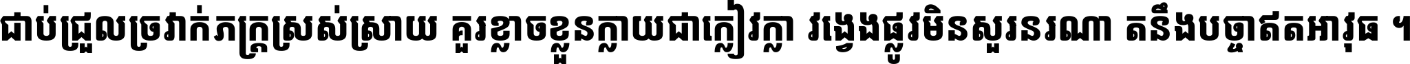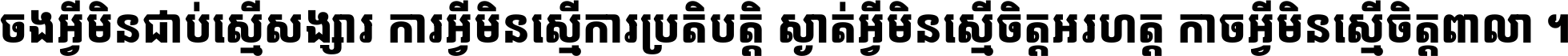 ចង​អ្វី​មិន​ជាប់​ស្មើ​សង្សារ ការ​អ្វី​មិន​ស្មើ​ការ​ប្រតិបត្តិ ស្ងាត់​អ្វី​មិន​ស្មើ​​ចិត្ត​អរហត្ត​ កាច​អ្វី​មិន​ស្មើ​ចិត្ត​ពាលា ។