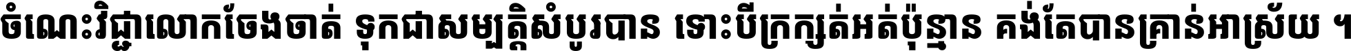 ចំណេះ​វិជ្ជា​លោក​ចែង​ចាត់ ទុក​ជា​សម្បត្តិ​សំបូរ​បាន ទោះ​បី​ក្រក្សត់​អត់​ប៉ុន្មាន គង់​តែ​បាន​គ្រាន់​អាស្រ័យ ។