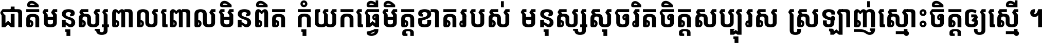 ជាតិ​មនុស្ស​ពាល​ពោល​មិន​ពិត កុំ​យក​ធ្វើ​មិត្ត​ខាត​របស់ មនុស្ស​សុចរិត​ចិត្ត​សប្បុរស ស្រឡាញ់​ស្មោះ​ចិត្ត​ឲ្យ​ស្មើ ។