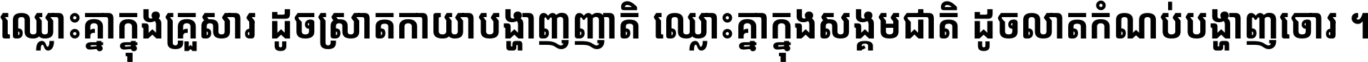 ឈ្លោះ​គ្នា​ក្នុង​គ្រួសារ ដូច​ស្រាត​កាយា​បង្ហាញ​ញាតិ ឈ្លោះគ្នាក្នុង​សង្គមជាតិ ដូច​លាត​កំណប់​បង្ហាញ​ចោរ ។