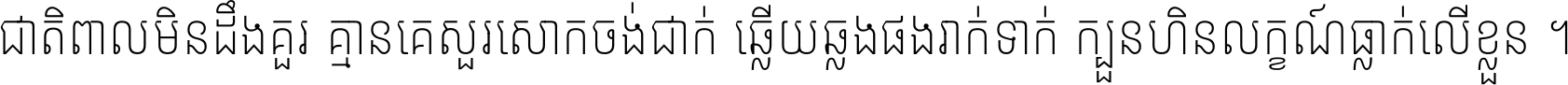ជាតិ​ពាល​មិន​ដឹង​គួរ គ្មាន​គេ​សួរ​សោក​ចង់​ជាក់ ឆ្លើយ​ឆ្លង​ផង​រាក់​ទាក់​ ក្បួន​ហិន​លក្ខណ៍​ធ្លាក់​លើ​ខ្លួន ។