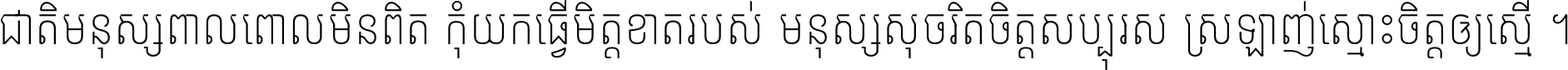 ជាតិ​មនុស្ស​ពាល​ពោល​មិន​ពិត កុំ​យក​ធ្វើ​មិត្ត​ខាត​របស់ មនុស្ស​សុចរិត​ចិត្ត​សប្បុរស ស្រឡាញ់​ស្មោះ​ចិត្ត​ឲ្យ​ស្មើ ។