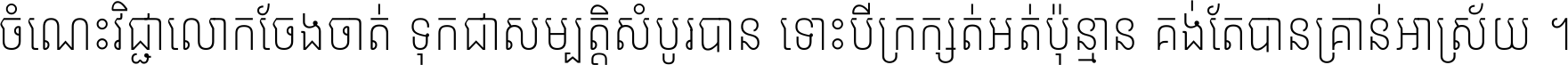 ចំណេះ​វិជ្ជា​លោក​ចែង​ចាត់ ទុក​ជា​សម្បត្តិ​សំបូរ​បាន ទោះ​បី​ក្រក្សត់​អត់​ប៉ុន្មាន គង់​តែ​បាន​គ្រាន់​អាស្រ័យ ។