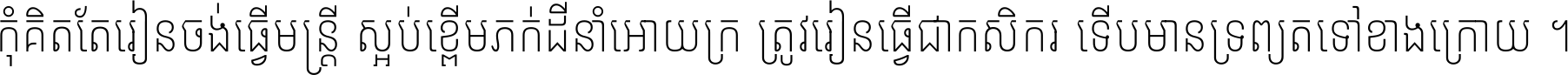 កុំ​គិត​តែ​រៀន​ចង់ធ្វើ​មន្ត្រី ស្អប់​ខ្ពើម​ភក់ដី​នាំអោយ​ក្រ ត្រូវ​រៀន​ធ្វើ​ជា​កសិករ ទើប​មានទ្រព្យ​ត​ទៅ​ខាង​ក្រោយ ។
